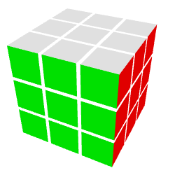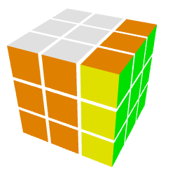 Given a public key , we could try to bruteforce and and check whether . However, we need to implement arithmetic on Rubik’s cubes. I have already played with a Rubik’s cube before and probably means turn the left/up face one quarter round, but it’s not obvious to visualize from those long strings of 6 letters…